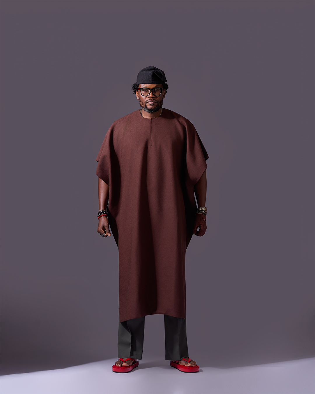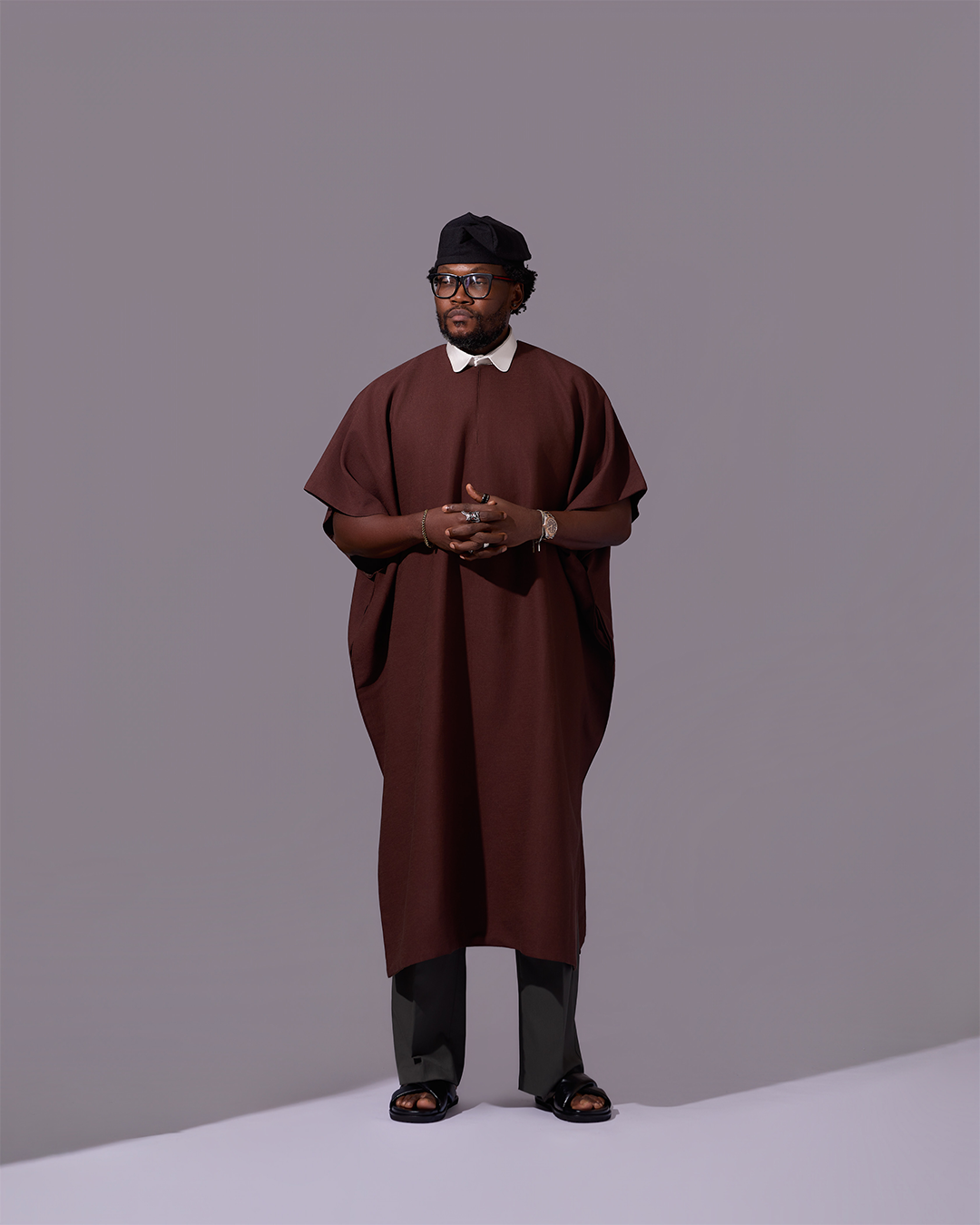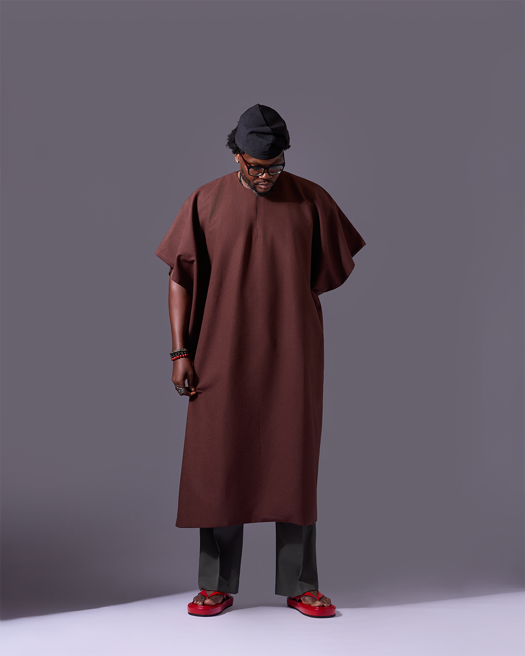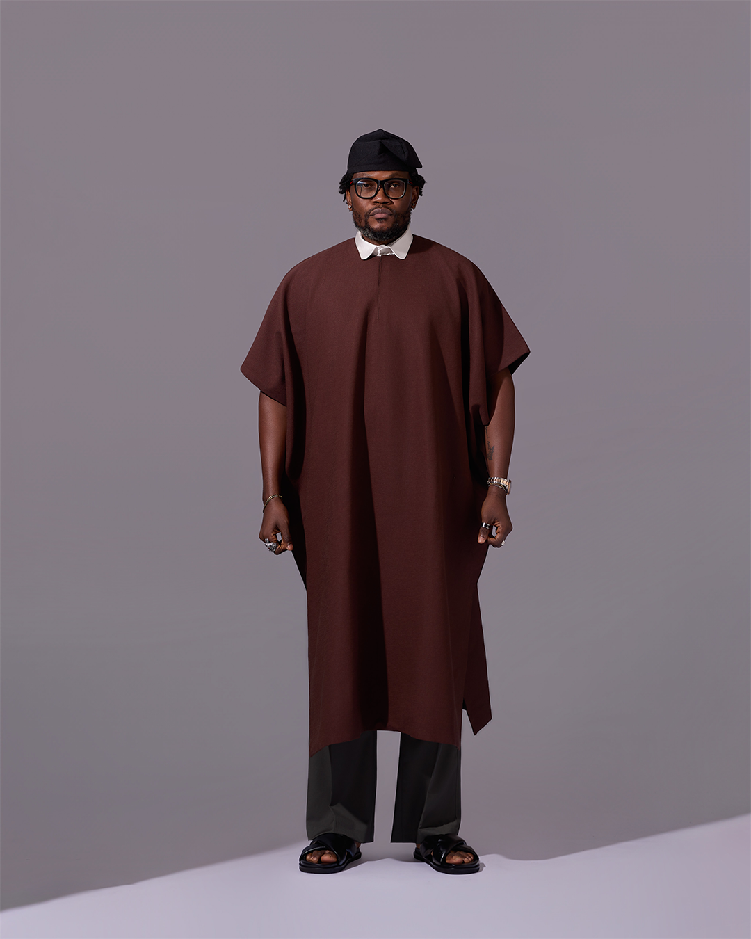 This kaftan is a symbol of where we begin and where strength is born. Its rich, earthy brown color is inspired by the soil, creating a look that is both grounded and sophisticated. The standout feature is its 2-in-1 design, which includes a crisp white detachable collar. Wear the collar for a formal, layered aesthetic, or remove it to reveal a clean, round-neck minimalist kaftan perfect for more relaxed settings.